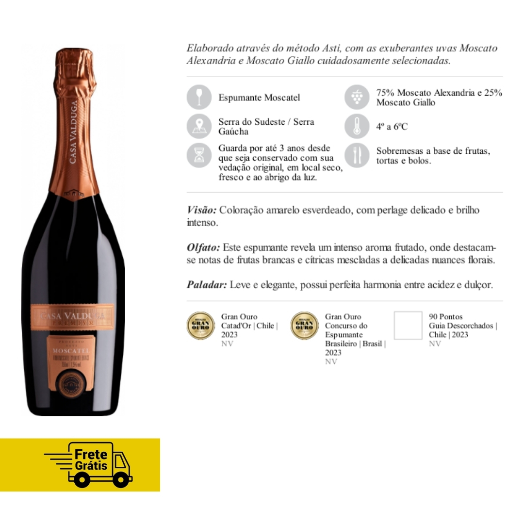 Espumante Moscatel Branco 750ml – Moscato Giallo & Moscato de Alexandria | Doce, Aromático e Refrescante