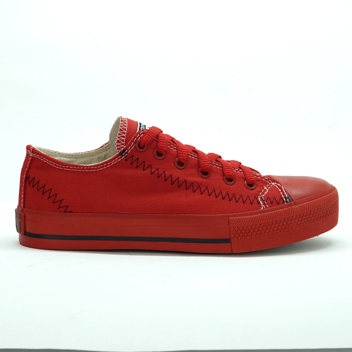 Cabedal confeccionado em lona de alta qualidade e acabamento. Forro interno em
